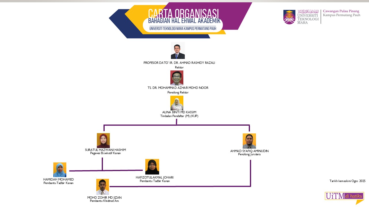 Bahagian Hal Ehwal Akademik bertanggungjawab untuk menguruskan hal-hal yang berkaitan dengan pengajaran dan pembelajaran program-program akademik di UiTM Cawangan Pulau Pinang Kampus Bertam.